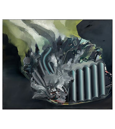 Lars Fischer combines digital and traditional techniques in his artistic practice. Image collages of exemplary motifs printed on PVC become the background for scenes and objects painted in oil. His hybrid paintings process and narrate the theme of catastrophe. Painted social phenomena become highly symbolic narratives of a human-centered reality.